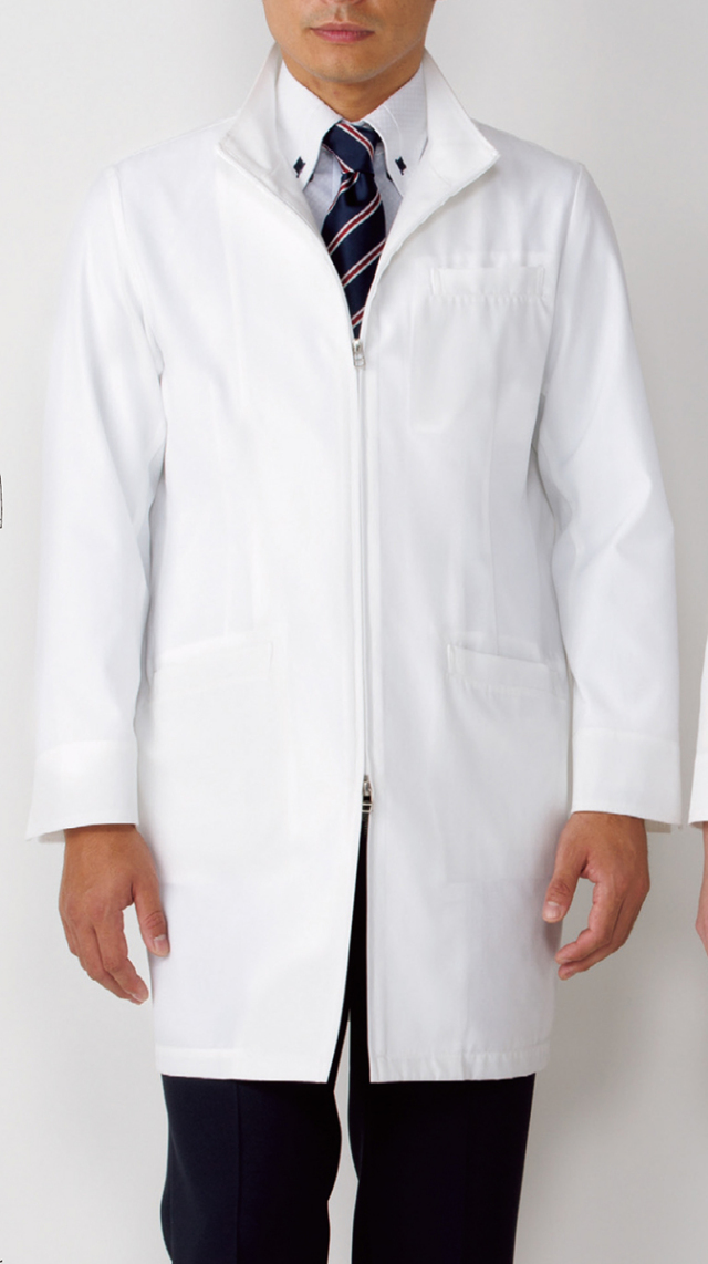 軽いストレッチ性をもつジップアップハーフ丈診察衣。